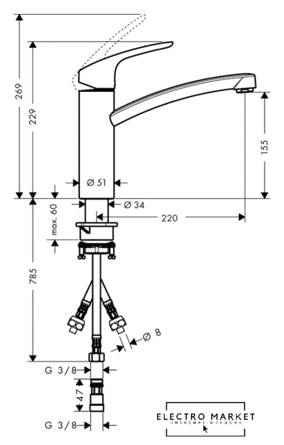 однорычажный смеситель для мойки, монтаж на раковину или столешницу