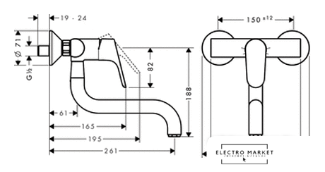 однорычажный смеситель для ванны и душа, монтаж на стену