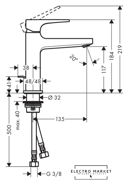 | Длина (вылет) излива | 135 мм |
