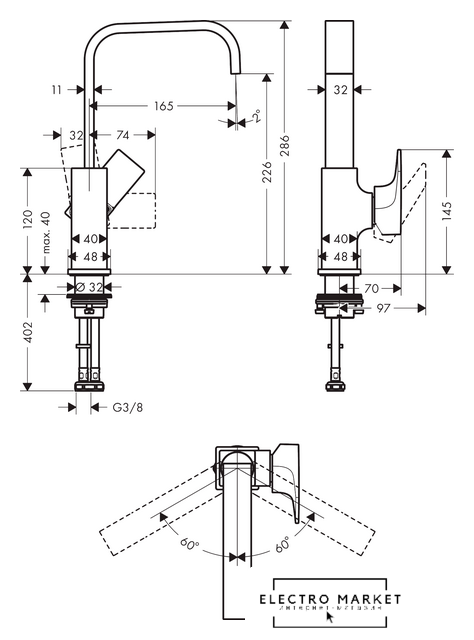| Длина (вылет) излива | 165 мм |