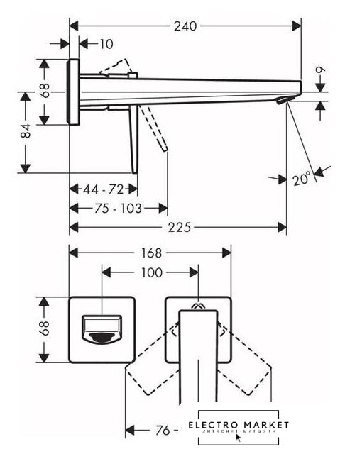 однорычажный смеситель для ванны и душа, монтаж скрытый