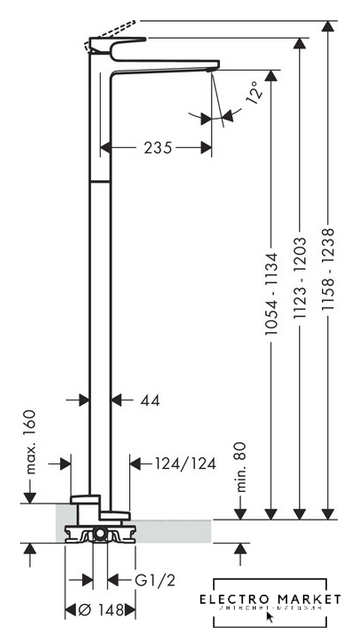 однорычажный смеситель для отдельностоящего умывальника, монтаж на пол