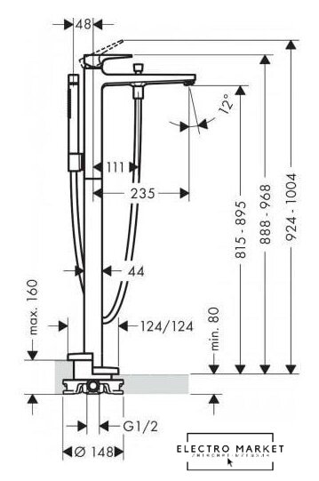 термостатический смеситель для ванны и душа, монтаж скрытый