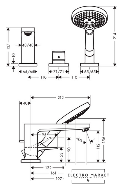 однорычажный смеситель для отдельностоящего умывальника, монтаж на раковину или столешницу