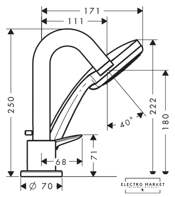 однорычажный смеситель для ванны и душа, монтаж на стену