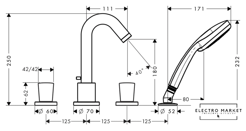 однорычажный смеситель для ванны и душа, монтаж на стену