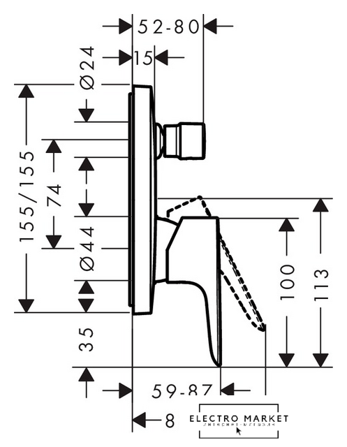 термостатический смеситель для душа, монтаж скрытый