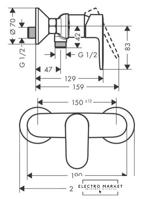 однорычажный смеситель для ванны и душа, монтаж на стену