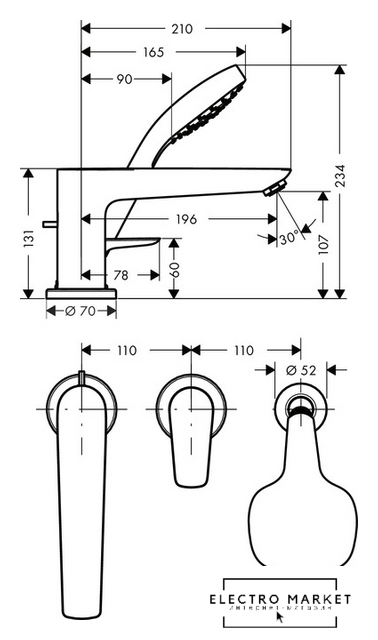 Необходимые части | для смесителя на 3 отверстия на край ванны |