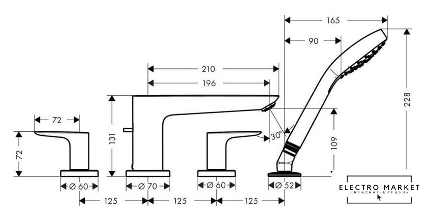Ширина | 70 мм (смеситель) |
