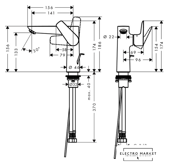 | Длина (вылет) излива | 141 мм |