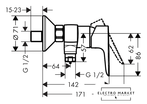 однорычажный смеситель для ванны и душа, монтаж на стену
