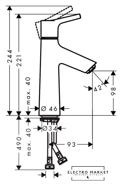 | Длина (вылет) излива | 93 мм |
