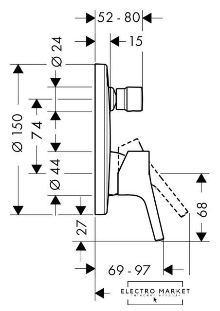 термостатический смеситель для душа, монтаж скрытый