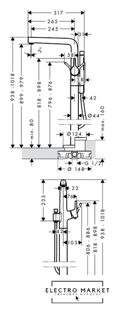 однорычажный смеситель для мойки, монтаж на раковину или столешницу