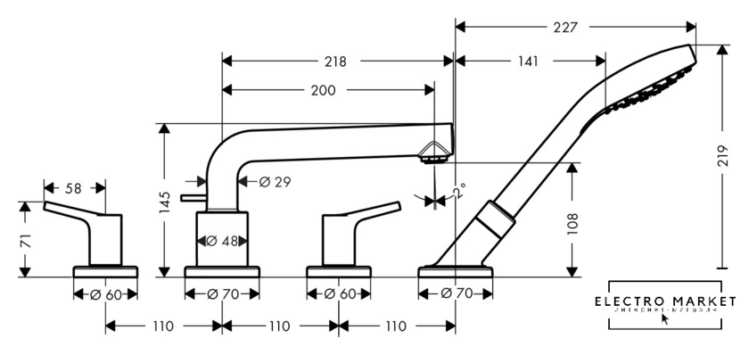 Необходимые части | для смесителя на 4 отверстия на край ванны 13444180 |
