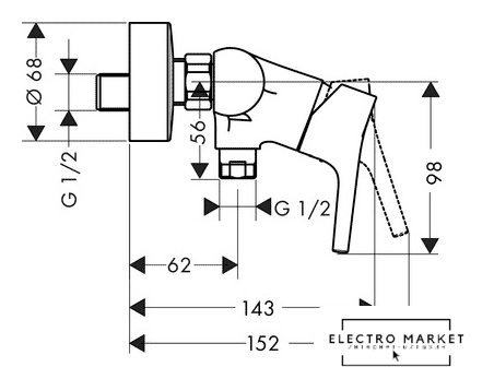 однорычажный смеситель для ванны и душа, монтаж на стену