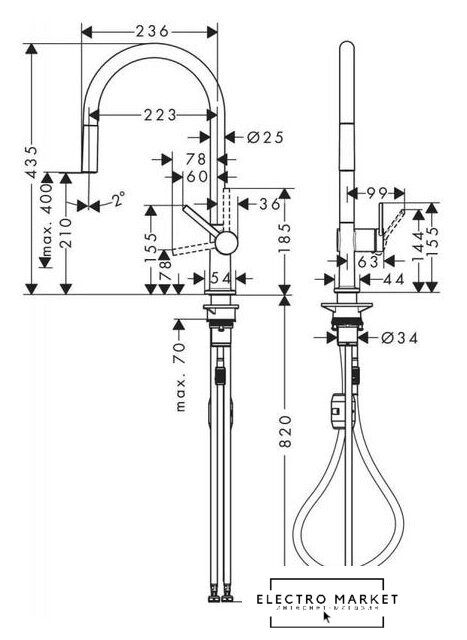 однорычажный смеситель для кухни, монтаж на раковину или столешницу