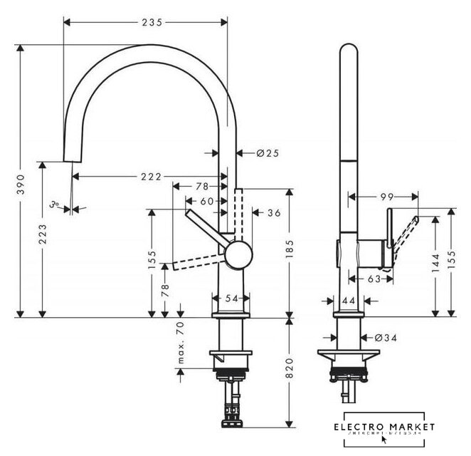 бесконтактный смеситель для умывальника, монтаж на раковину или столешницу