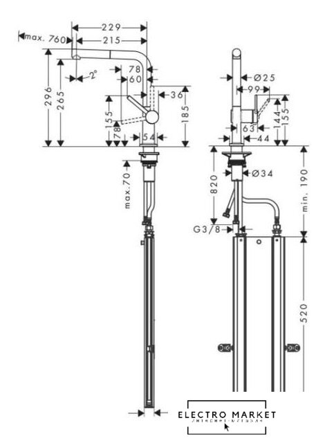 однорычажный смеситель для ванны и душа, монтаж скрытый