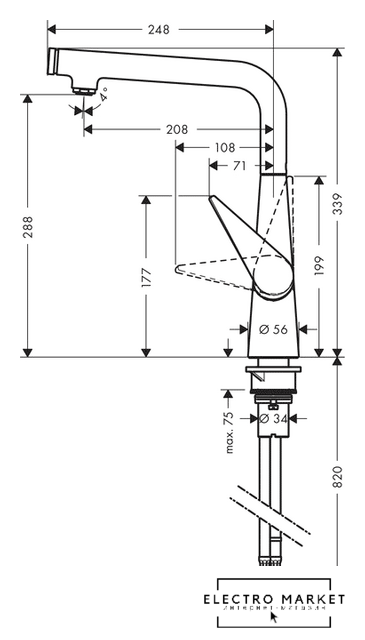 Высота излива | 288 мм |