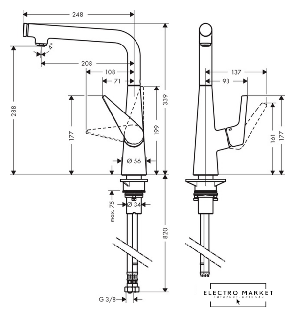 Высота излива | 288 мм |