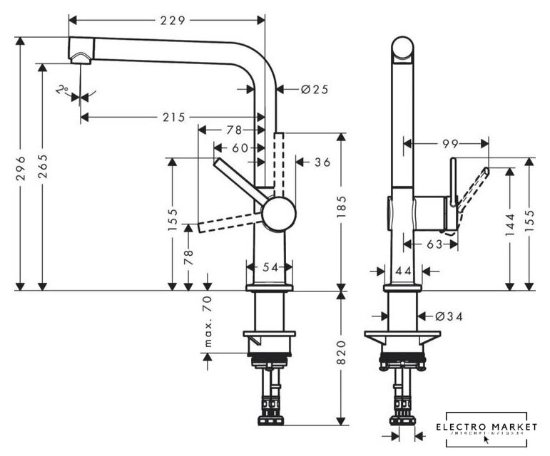 однорычажный смеситель для умывальника, монтаж на раковину или столешницу