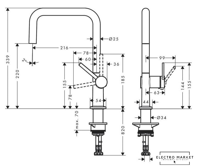 однорычажный смеситель для мойки, монтаж на раковину или столешницу