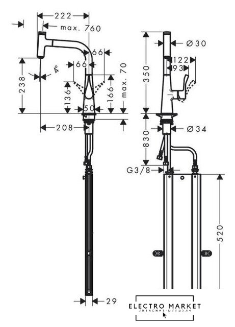 Высота излива | 238 мм |