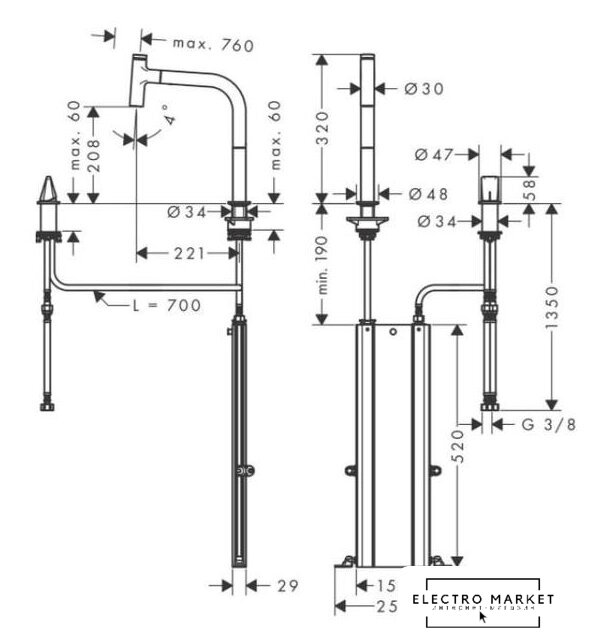 однорычажный смеситель для мойки, монтаж на раковину или столешницу