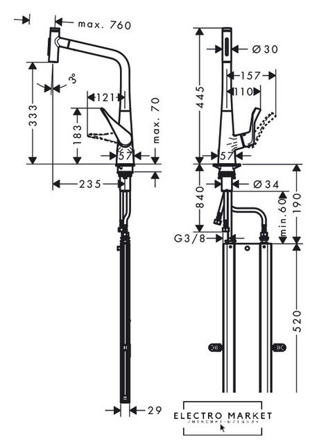 Высота излива | 333 мм |