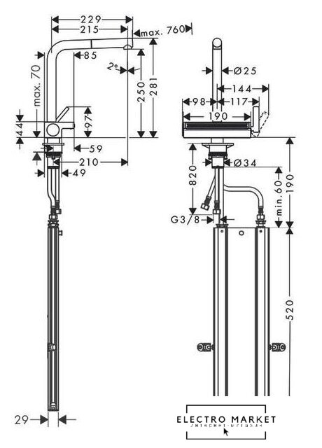 Поворотный излив | 60 ° (или 110° или 150°) |