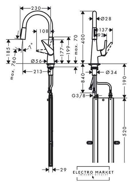 термостатический смеситель для мойки, монтаж на раковину или столешницу