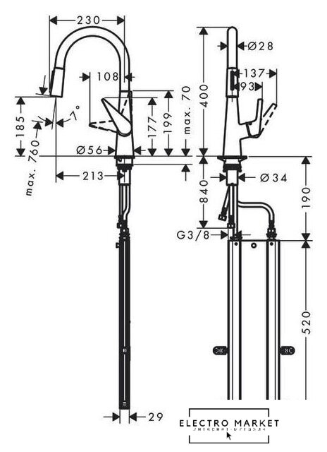 однорычажный смеситель для мойки, монтаж на раковину или столешницу