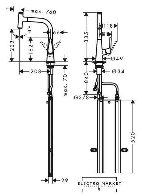 однорычажный смеситель для мойки, монтаж на раковину или столешницу