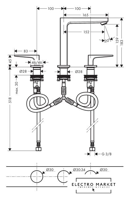 двухвентильный смеситель для умывальника, монтаж на раковину или столешницу
