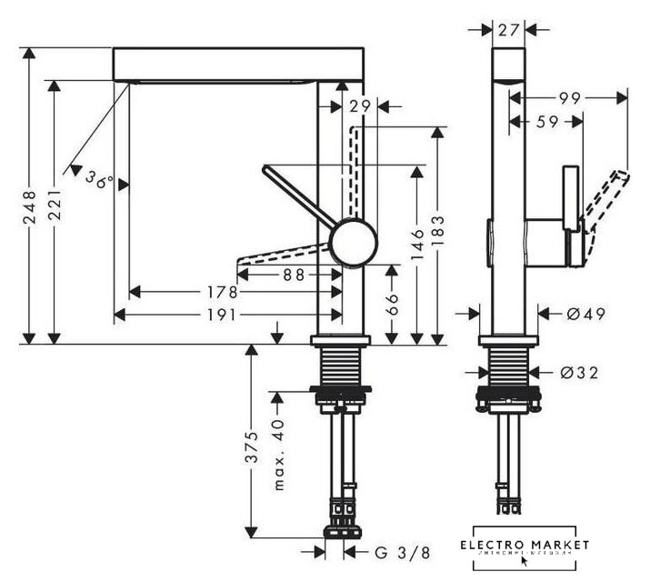 | Длина (вылет) излива | 178 мм |