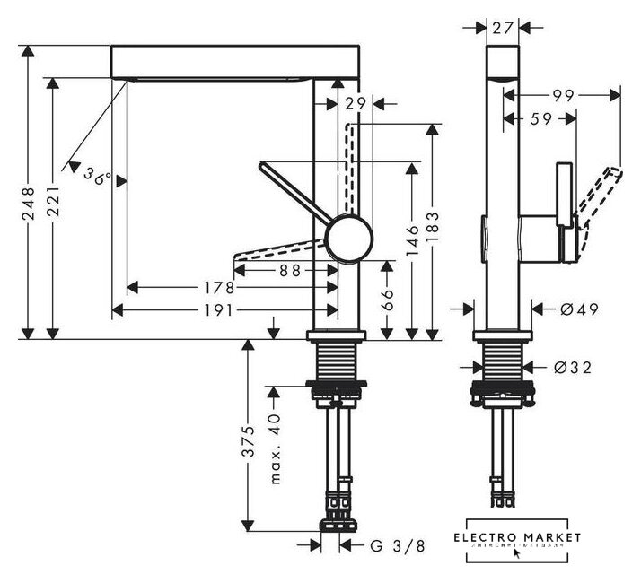 однорычажный смеситель для мойки, монтаж на раковину или столешницу