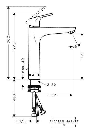 однорычажный смеситель для ванны и душа, монтаж скрытый