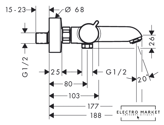 Длина (вылет) излива | 177 мм |