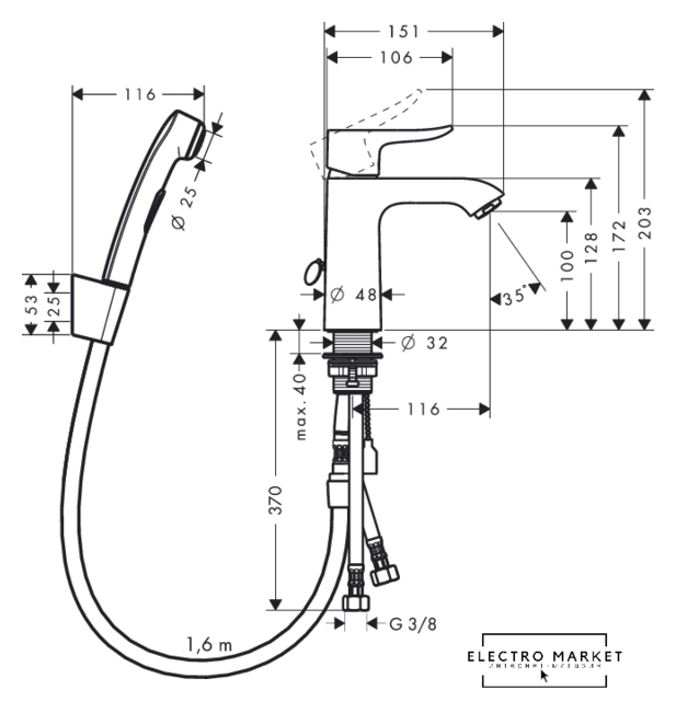 | Длина (вылет) излива | 116 мм |