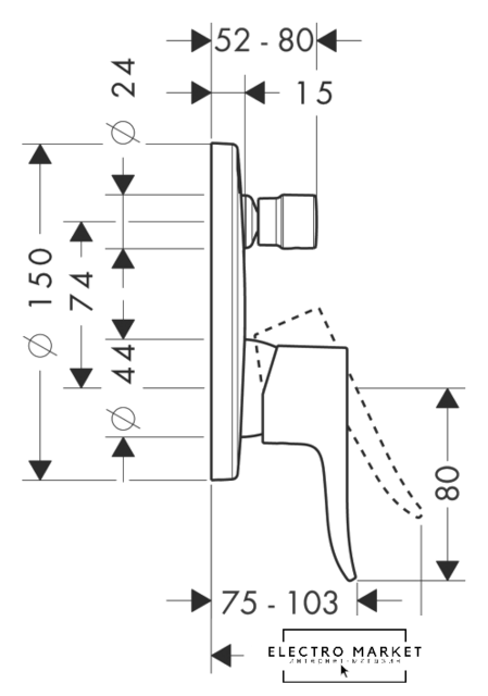 термостатический смеситель для ванны и душа, монтаж скрытый