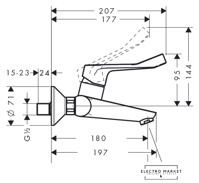 | Длина (вылет) излива | 180 мм |