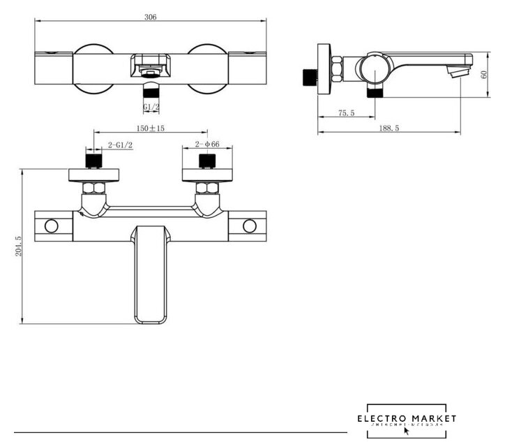 однорычажный смеситель для ванны и душа, монтаж на ванну или полку