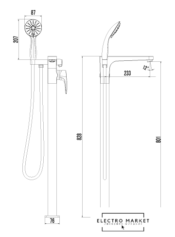 термостатический смеситель для ванны и душа, монтаж скрытый