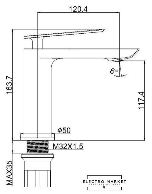 однорычажный смеситель для умывальника, монтаж на раковину или столешницу