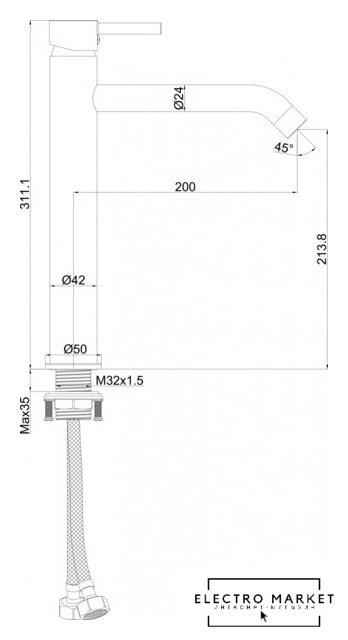 однорычажный смеситель для умывальника, монтаж на раковину или столешницу