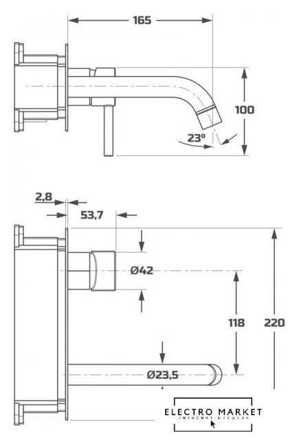однорычажный смеситель для ванны и душа, монтаж на стену