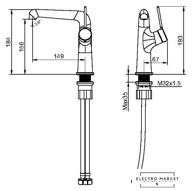 однорычажный смеситель для умывальника, монтаж на раковину или столешницу