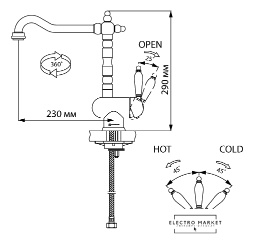 однорычажный смеситель для мойки, монтаж на раковину или столешницу